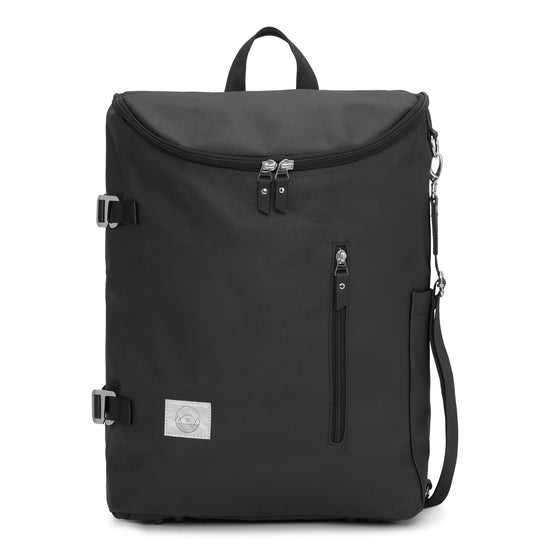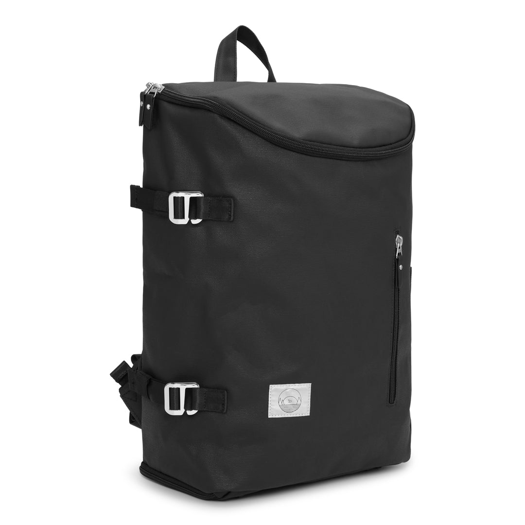 Tasken er fremstillet i water-sealed coated cotton canvas (100 % recycled) – et let, men meget stærkt materiale med tæt vævning og syntetisk voksfinish, som gør tasken modstandsdygtig over for både vand, varme og daglig slitage.